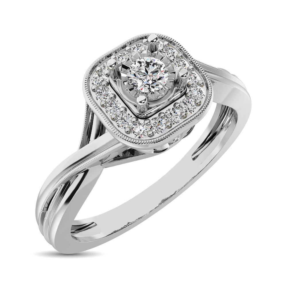 This eye-catching Promise Ring is available in 10K White Gold. There are 17 round diamonds with a total carat weight of 1/6 Ct.Tw. set in a Prong setting.