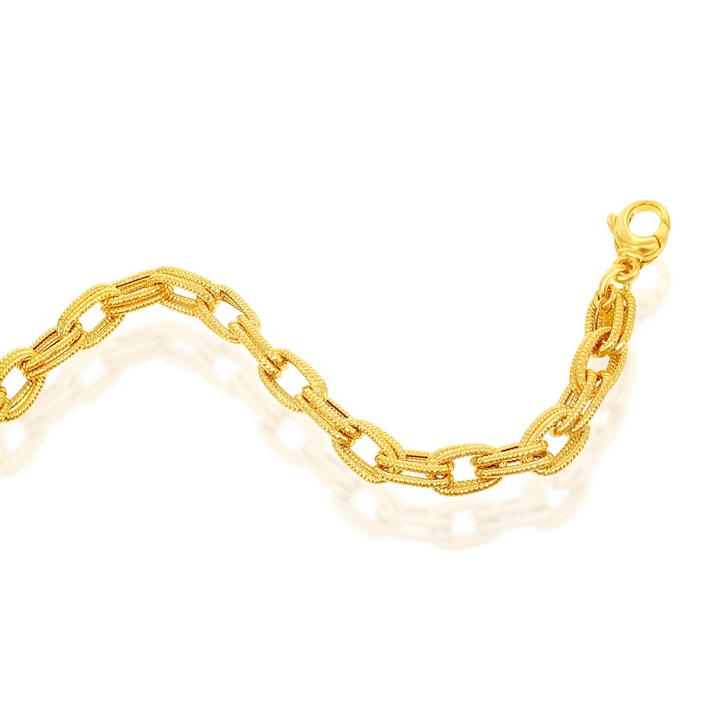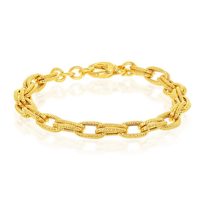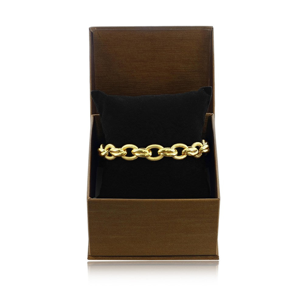 Sterling Silver With 14K Gold Overlay, Rope Design Double Oval Linked Bracelet, MADE IN ITALY
